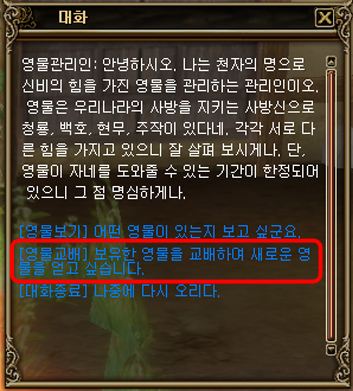 [영물교배] 대화 메뉴를 선택하여 교배 가능